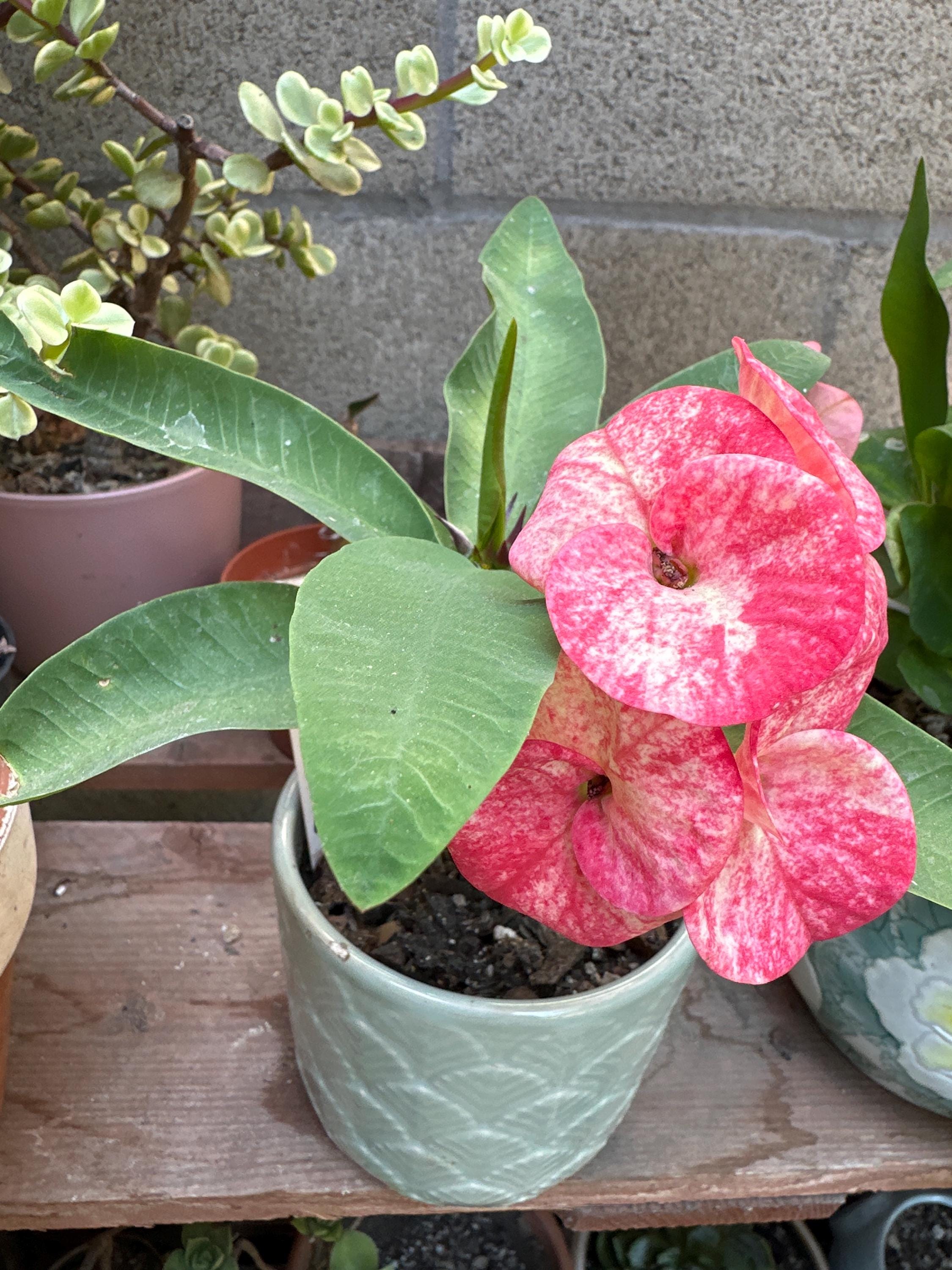 Beautiful Crown of Thorns with Large blooms. You will receive 3-6in OR LARGE plant with bare roots and some soil. This plant is drought tolerant. Full sun is needed, Use a well-draining potting mix containing perlite, and/or pine bark, soil must be drained before planting and weekly watering during hot weather.