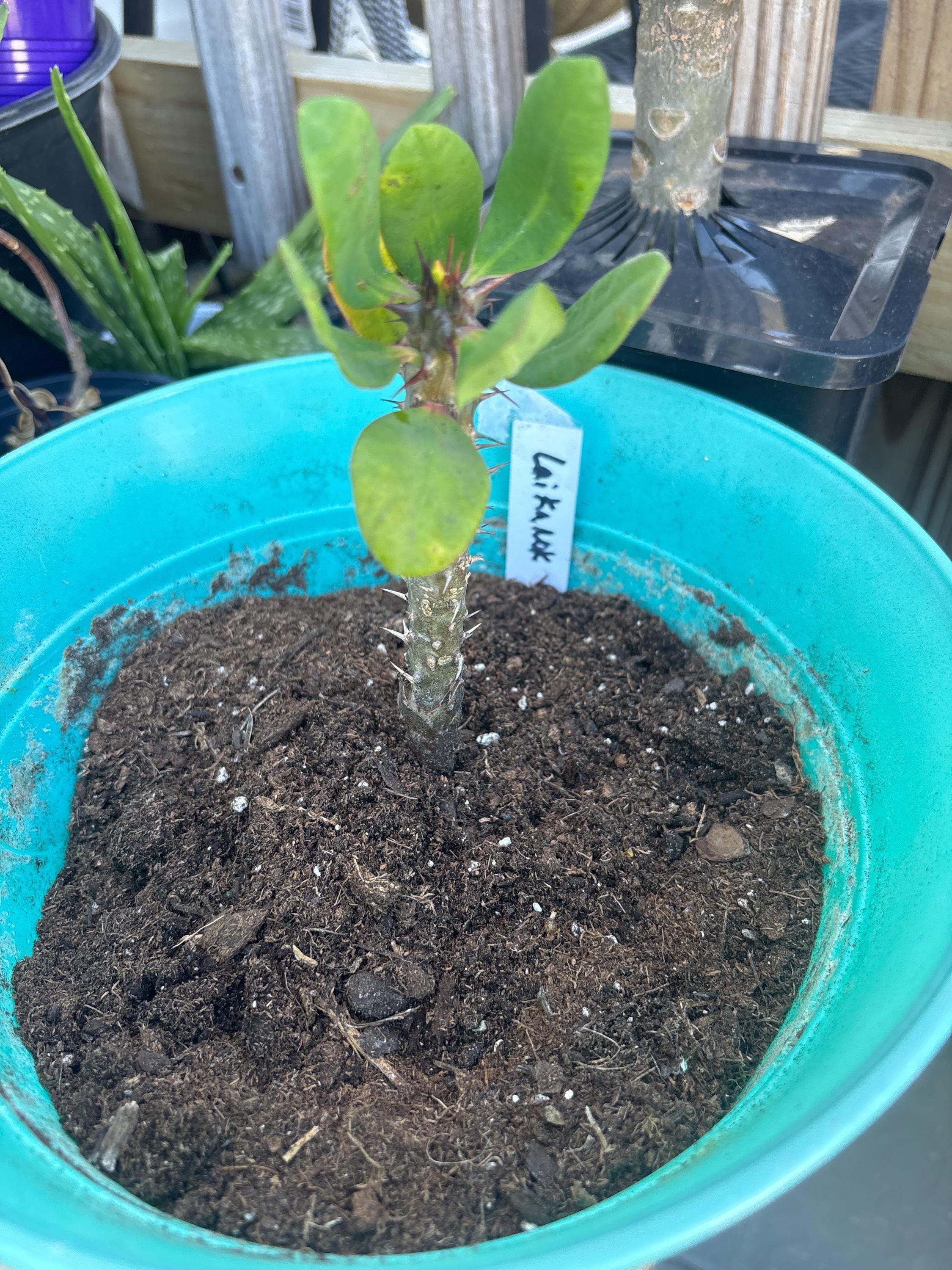 Beautiful Crown of Thorns with small blooms. You will receive 3-6 INCH OR LARGE plant with bare roots and some soil. This plant is drought tolerant. Full sun is needed, Use a well-draining potting mix containing perlite, and/or pine bark, soil must be drained before planting and weekly watering during hot weather.