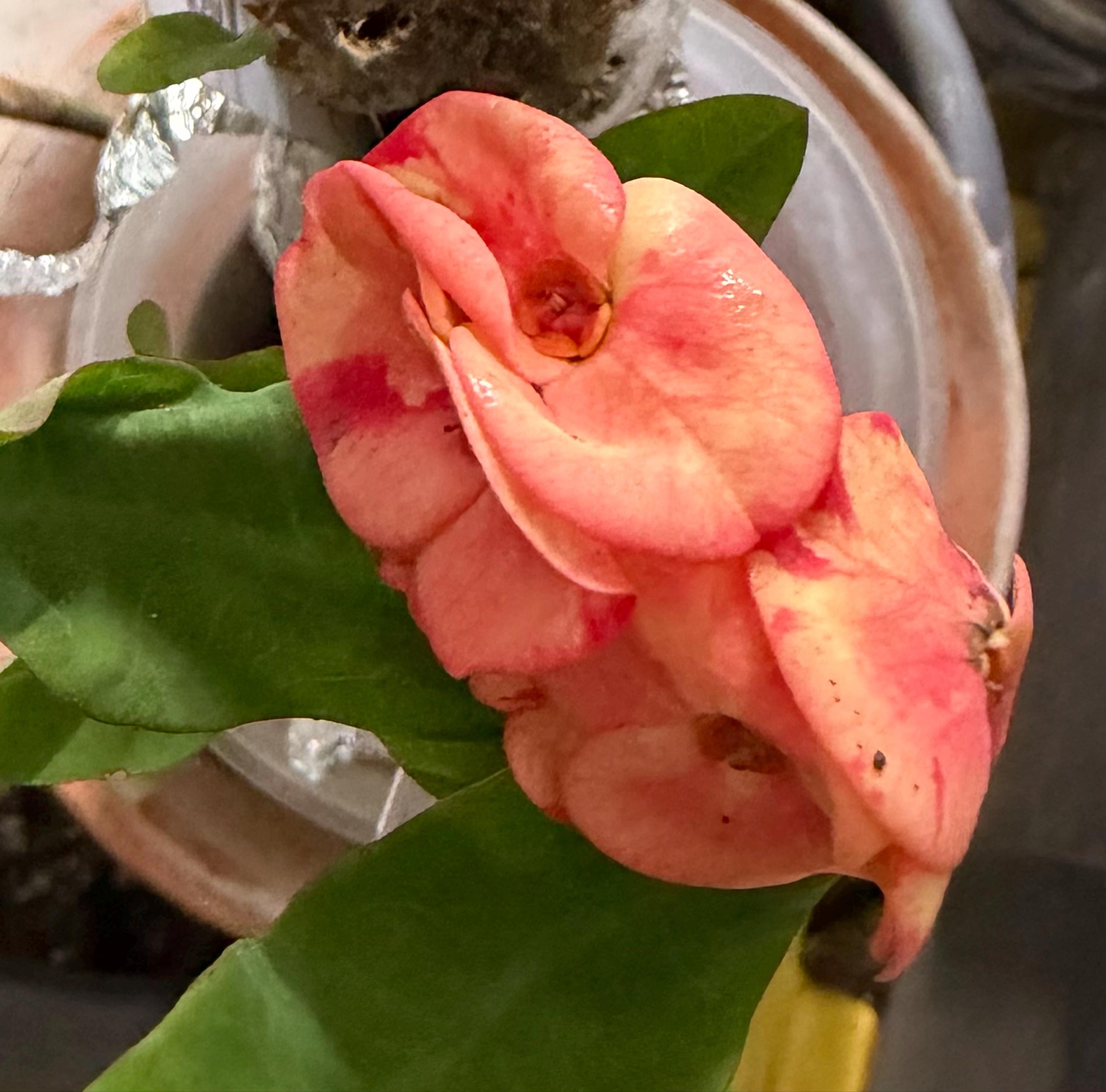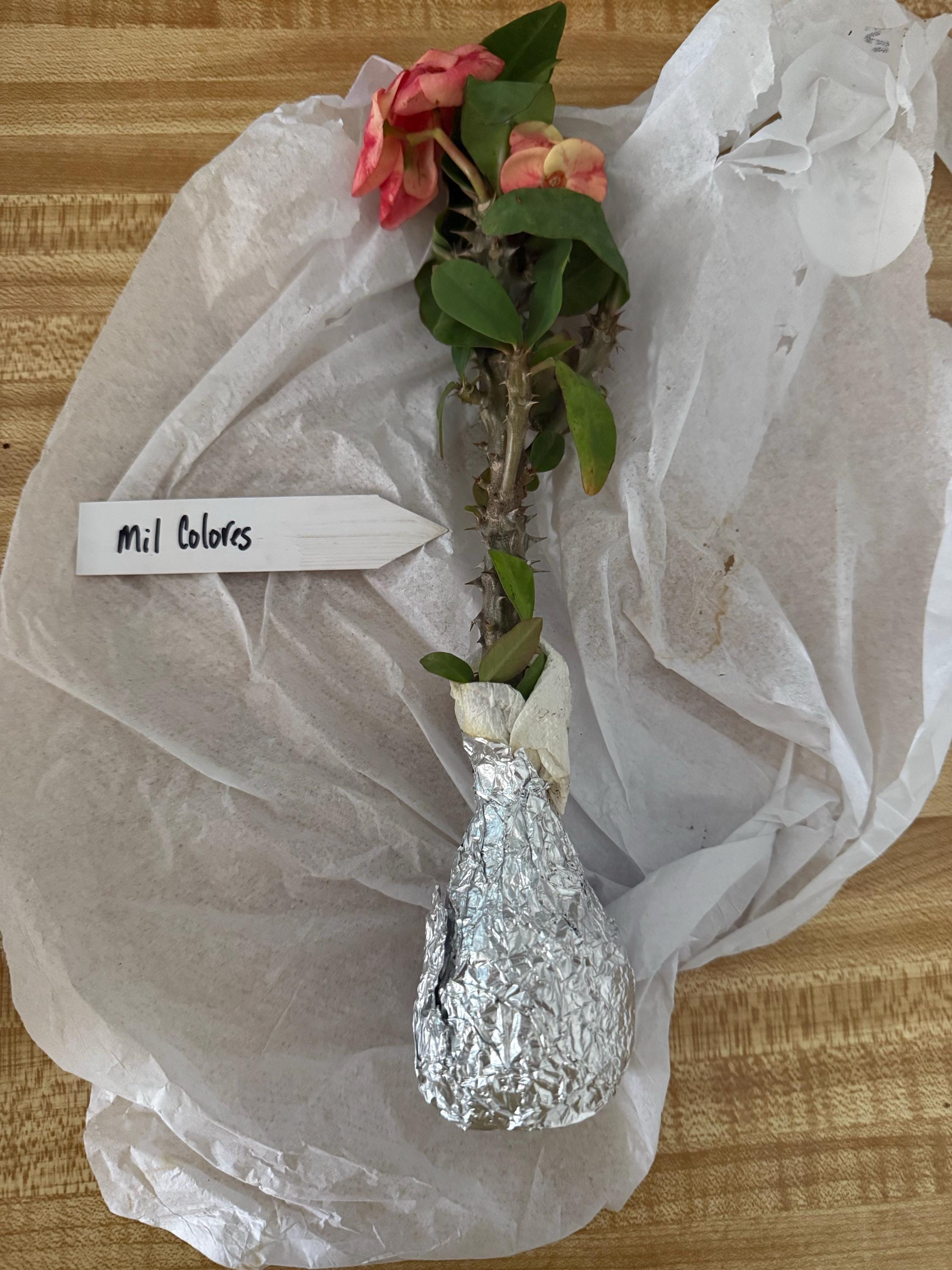 Beautiful Crown of Thorns with Large blooms. You will receive 6-10in plant with bare roots and some soil. This plant is drought tolerant. Full sun is needed, Use a well-draining potting mix containing perlite, and/or pine bark, soil must be drained before planting and weekly watering during hot weather.