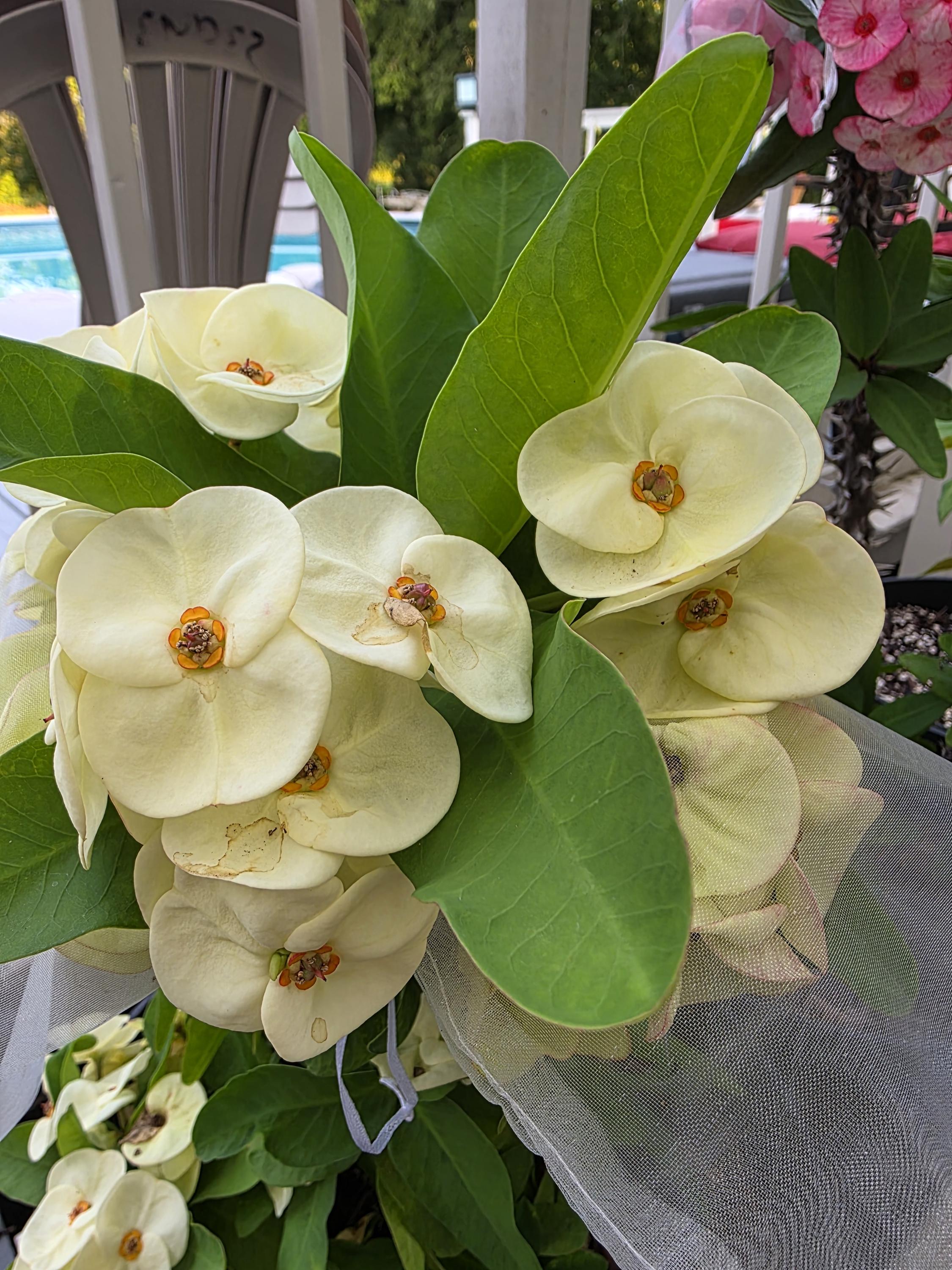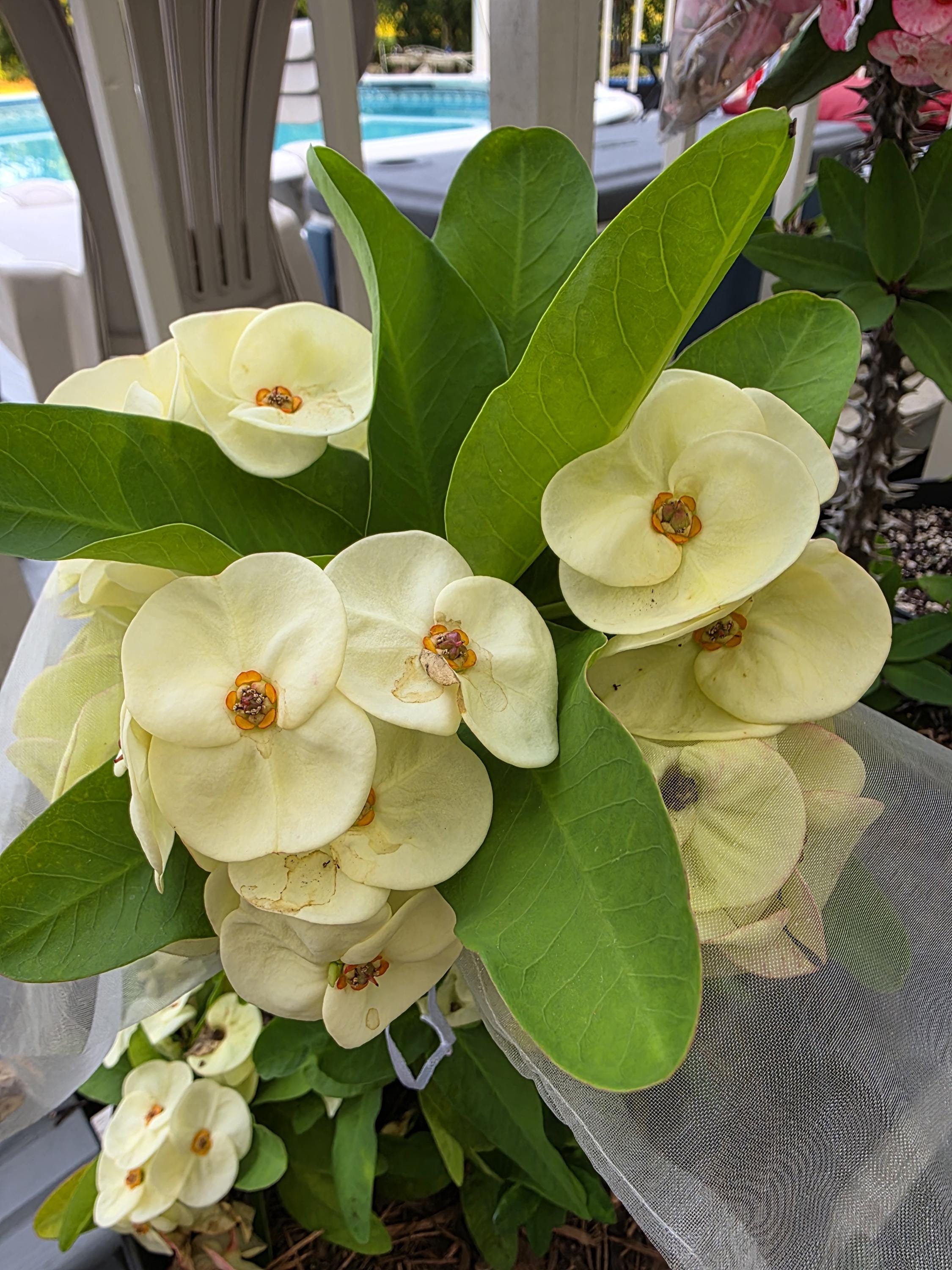 Beautiful Crown of Thorns with Large blooms. You will receive 3-6 INCH OR LARGE plant with bare roots and some soil.  This plant is drought tolerant. Full sun is needed, Use a well-draining potting mix containing perlite, and/or pine bark, soil must be drained before planting and weekly watering during hot weather.