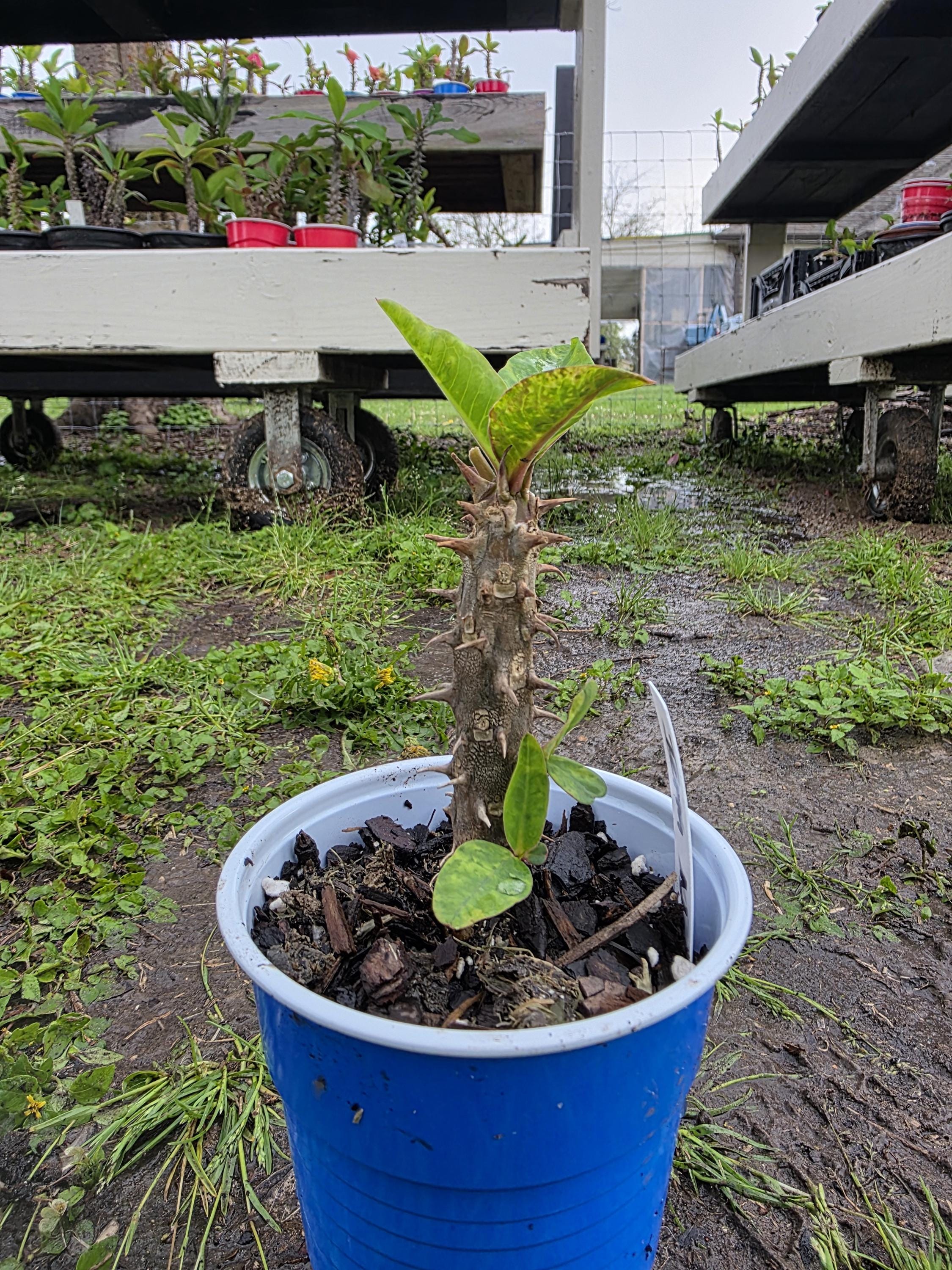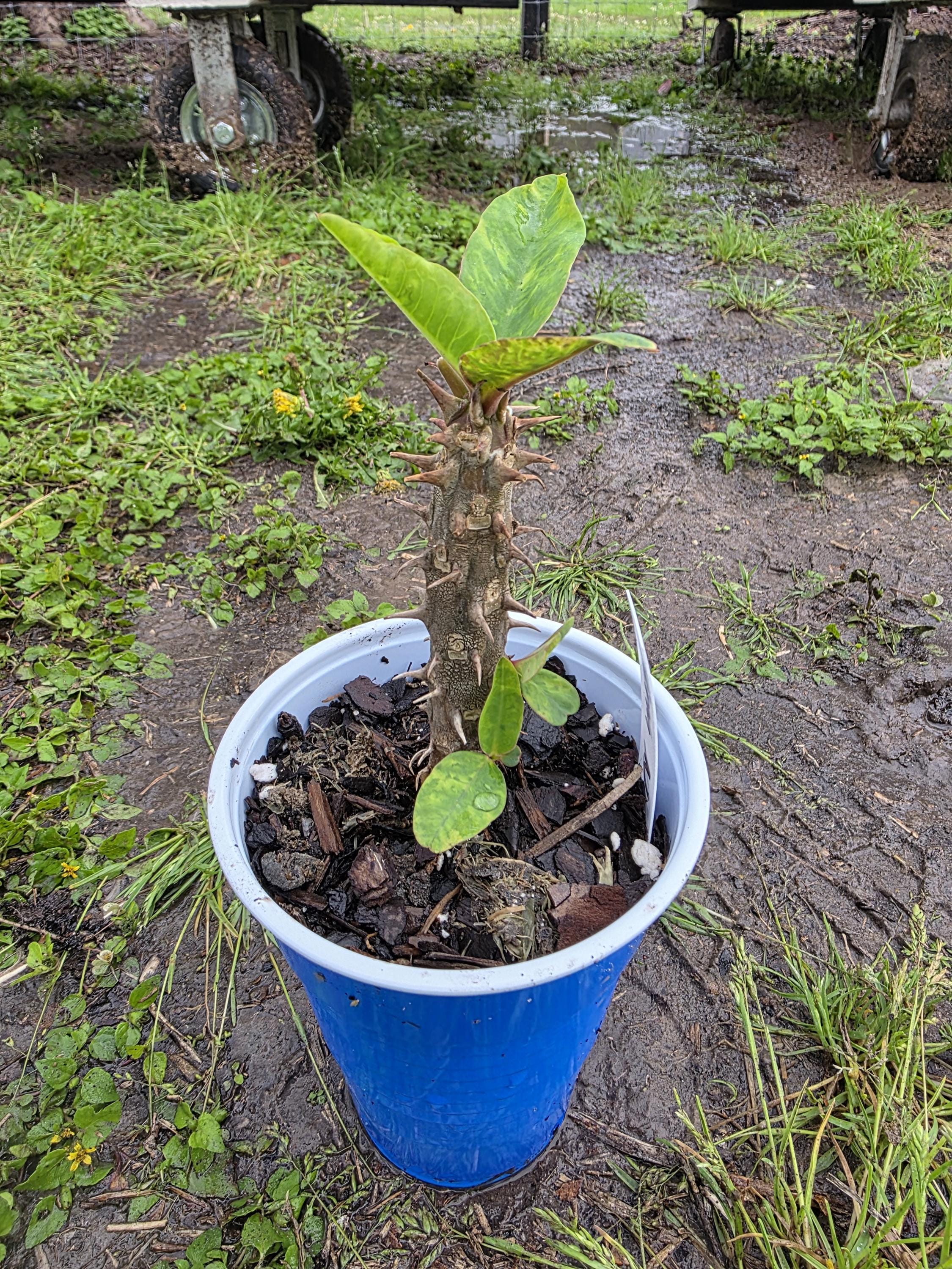Beautiful Crown of Thorns with Large blooms. You will receive 4-8inn OR LARGER plant with bare roots and some soil. This plant is drought tolerant. Full sun is needed, Use a well-draining potting mix containing perlite, and/or pine bark, soil must be drained before planting and weekly watering during hot weather.