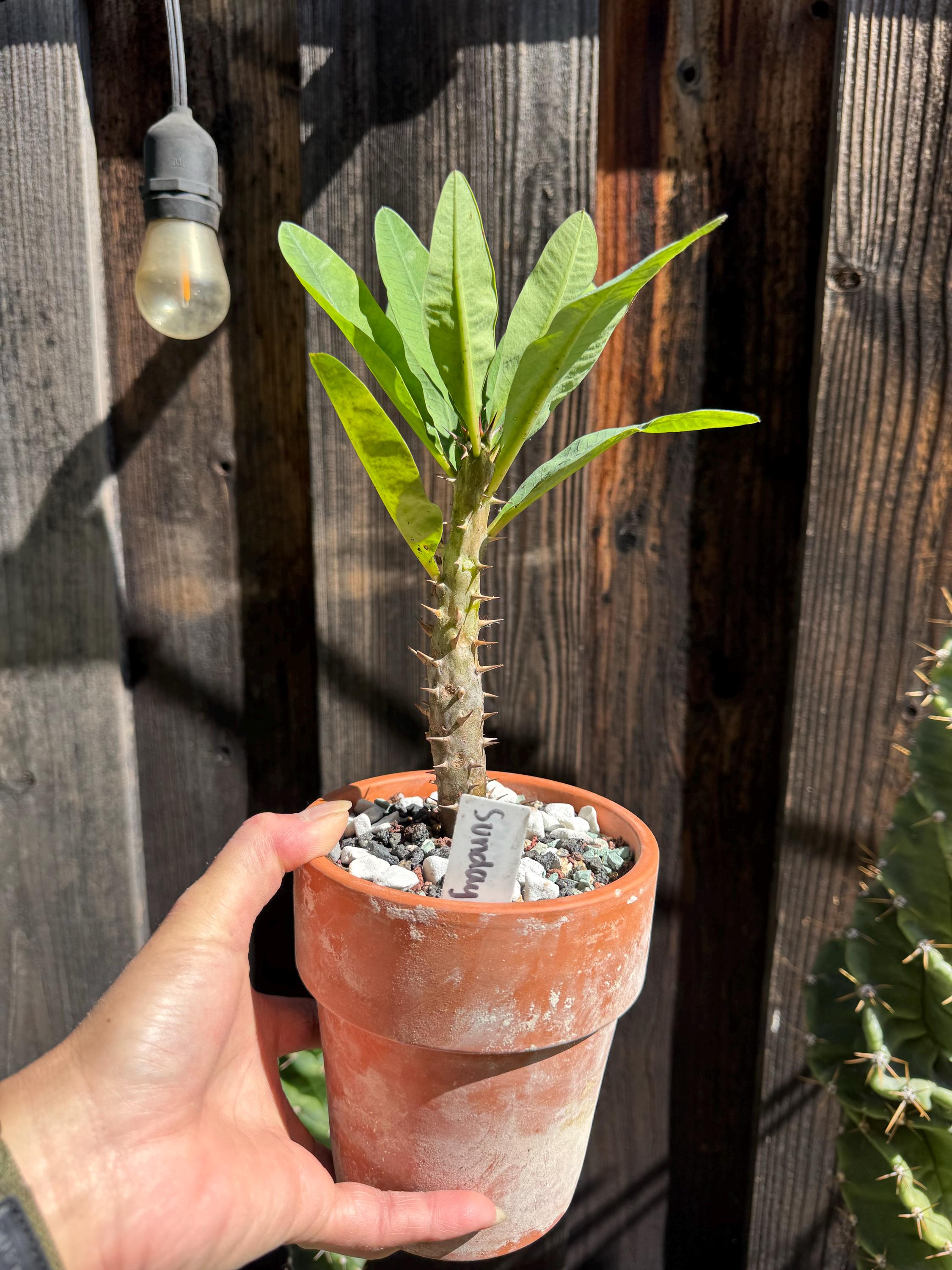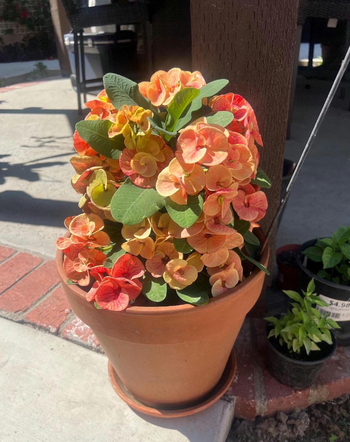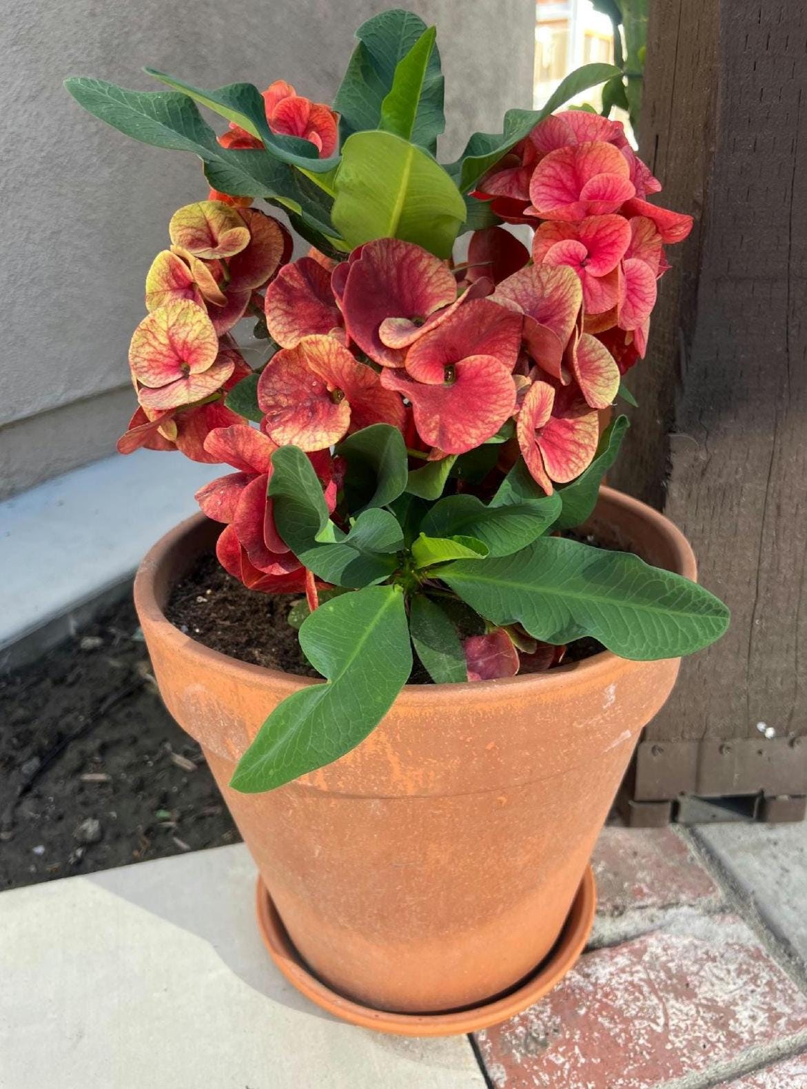 Beautiful Crown of Thorns with Large blooms. You will receive 3-6 INCH OR LARGE plant with bare roots and some soil.  This plant is drought tolerant. Full sun is needed, Use a well-draining potting mix containing perlite, and/or pine bark, soil must be drained before planting and weekly watering during hot weather.