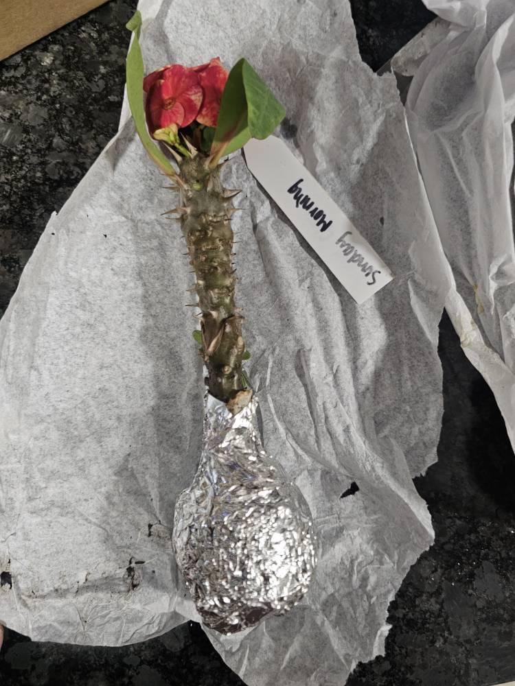 Lovely, well rooted Euphorbia Crown Of Thorns / Cham Chan / Thai Hybrid. Well packaged, fast shipping, great communication. Thank you!