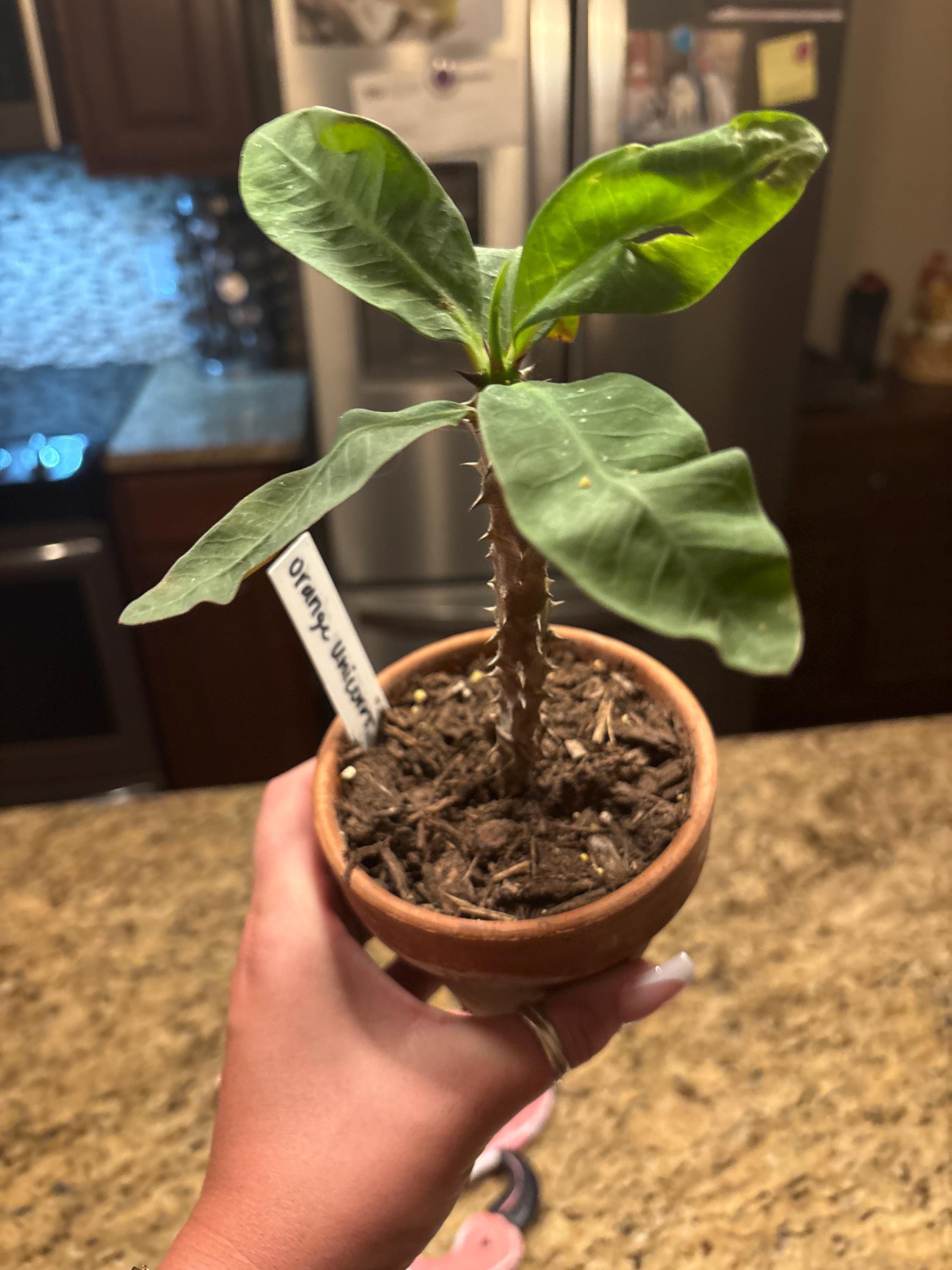 Beautiful Crown of Thorns with Large blooms. You will receive 3-6 INCH OR LARGE plant with bare roots and some soil.  This plant is drought tolerant. Full sun is needed, Use a well-draining potting mix containing perlite, and/or pine bark, soil must be drained before planting and weekly watering during hot weather.