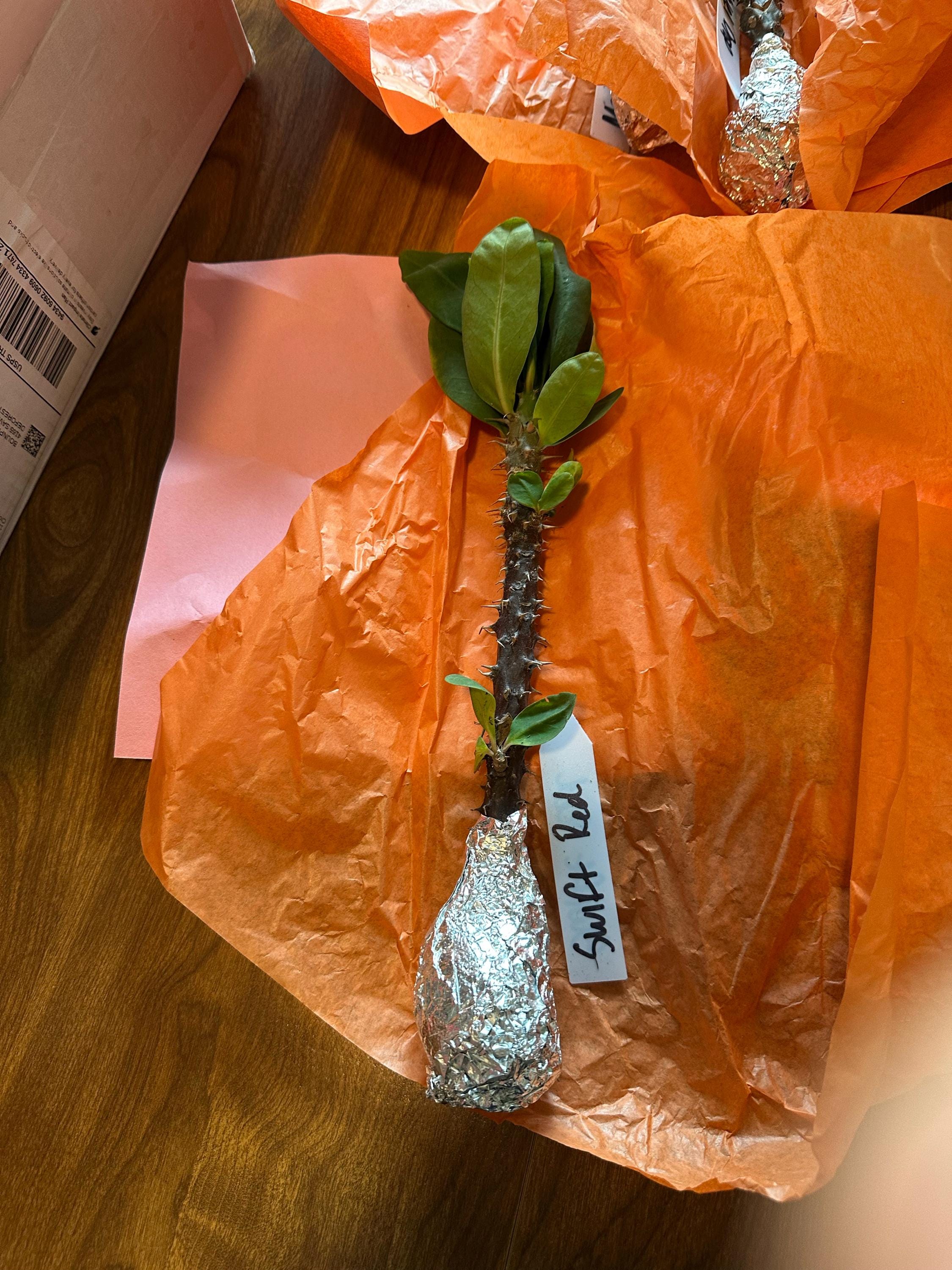 Beautiful Crown of Thorns with Large blooms. You will receive 3-6 INCH Plant OR LARGE plant with bare roots and some soil.  This plant is drought tolerant. Full sun is needed, Use a well-draining potting mix containing perlite, and/or pine bark, soil must be drained before planting and weekly watering during hot weather.