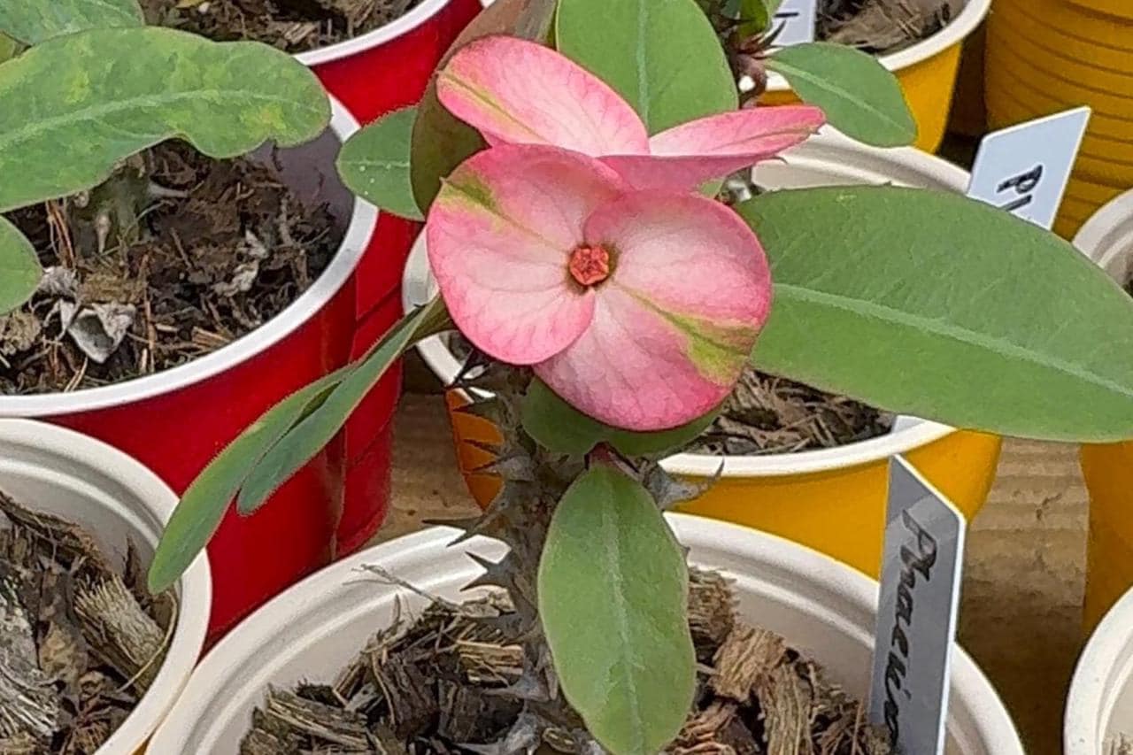 Beautiful Crown of Thorns with Large blooms. You will receive 3-6 INCH OR LARGE plant with bare roots and some soil.  This plant is drought tolerant. Full sun is needed, Use a well-draining potting mix containing perlite, and/or pine bark, soil must be drained before planting and weekly watering during hot weather.