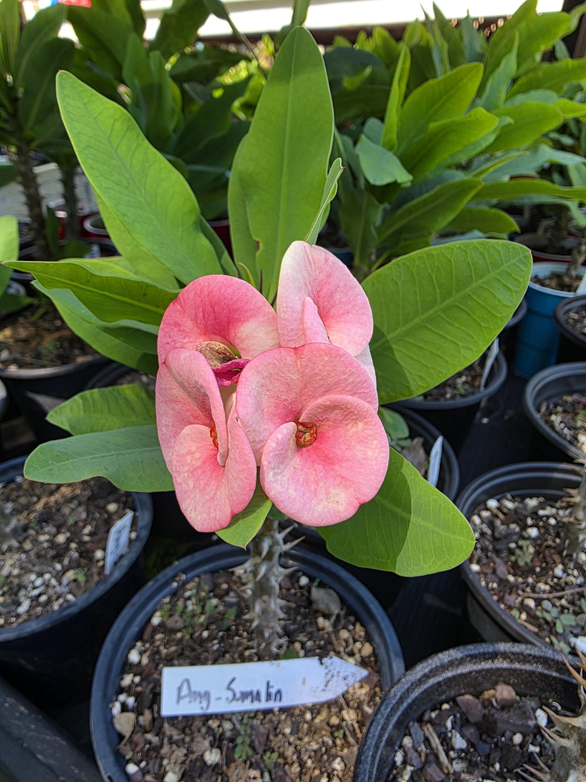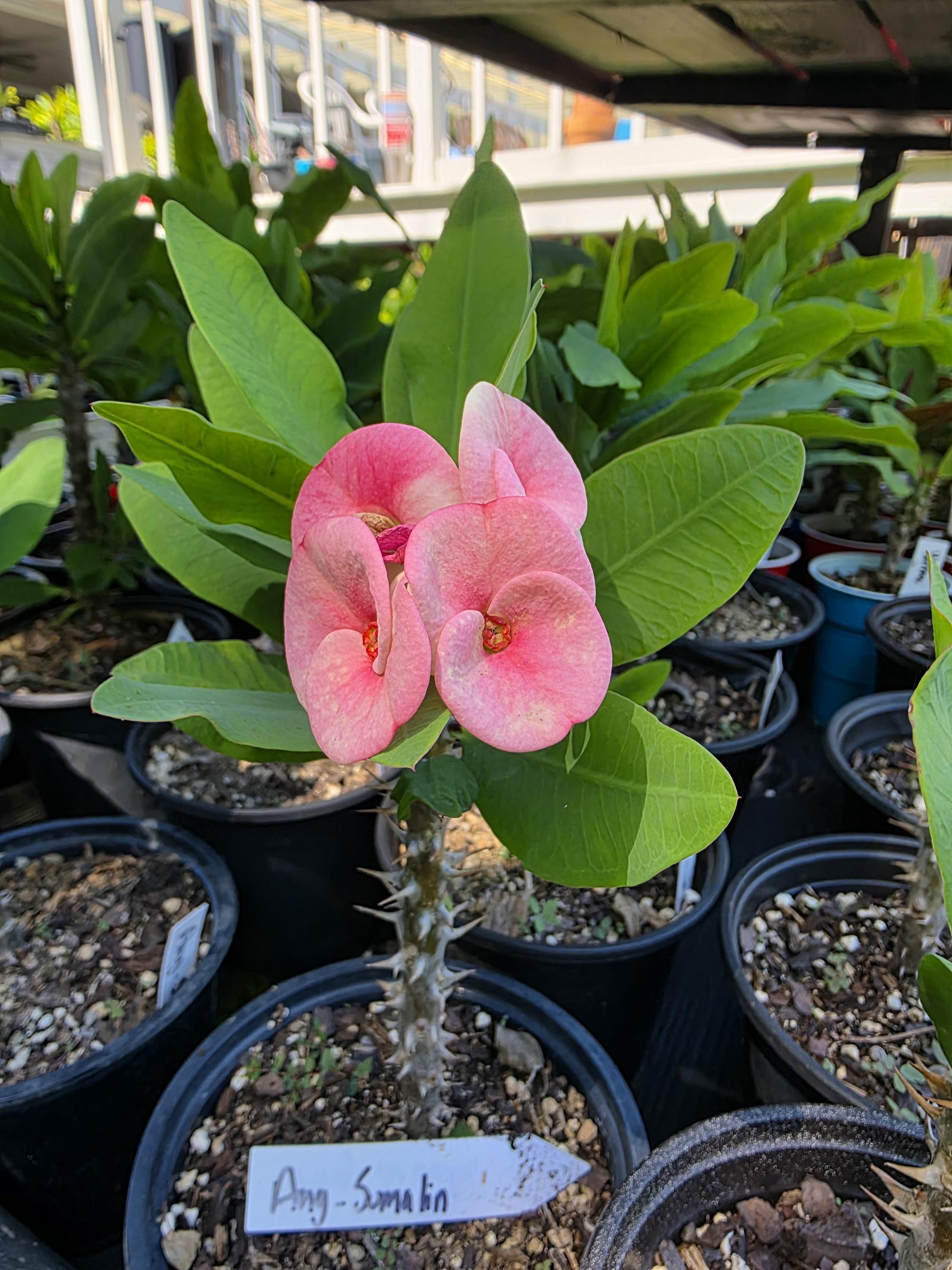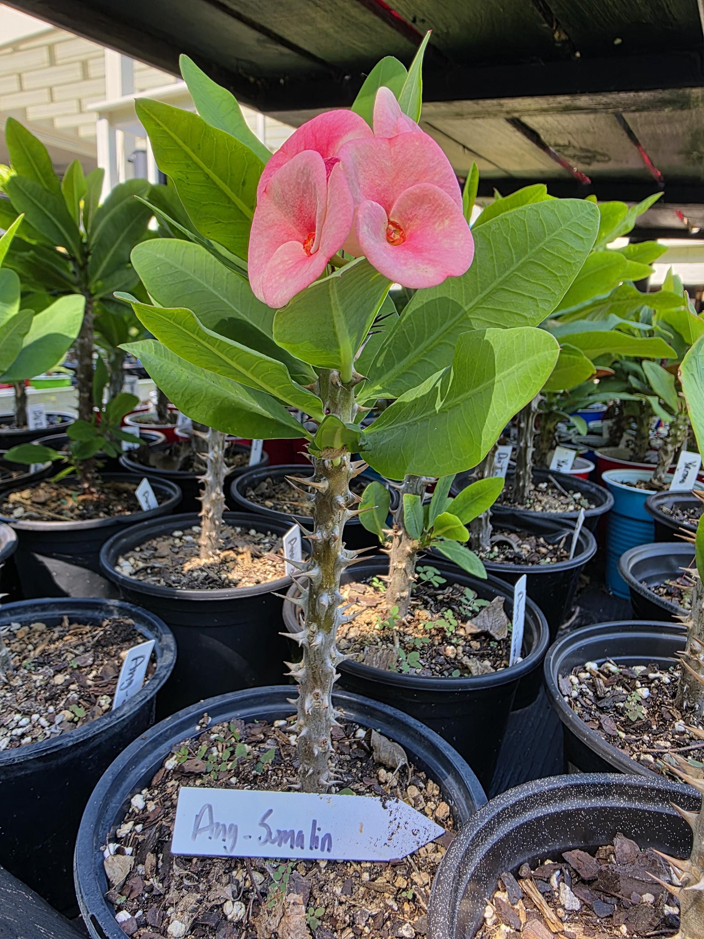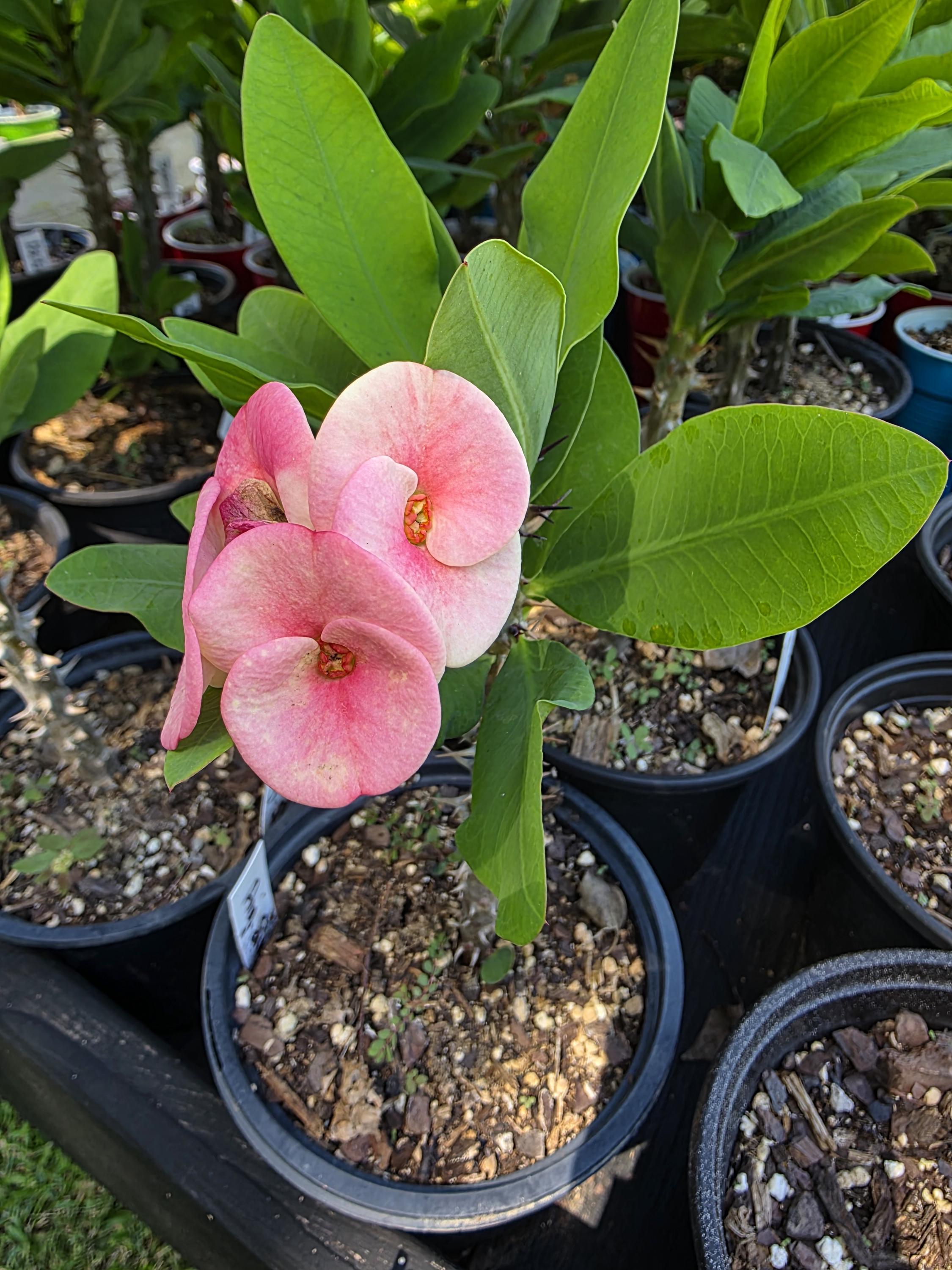Beautiful Crown of Thorns with Large blooms. You will receive 4-7in OR LARGER plant with bare roots and some soil.  This plant is drought tolerant. Full sun is needed, Use a well-draining potting mix containing perlite, and/or pine bark, soil must be drained before planting and weekly watering during hot weather.