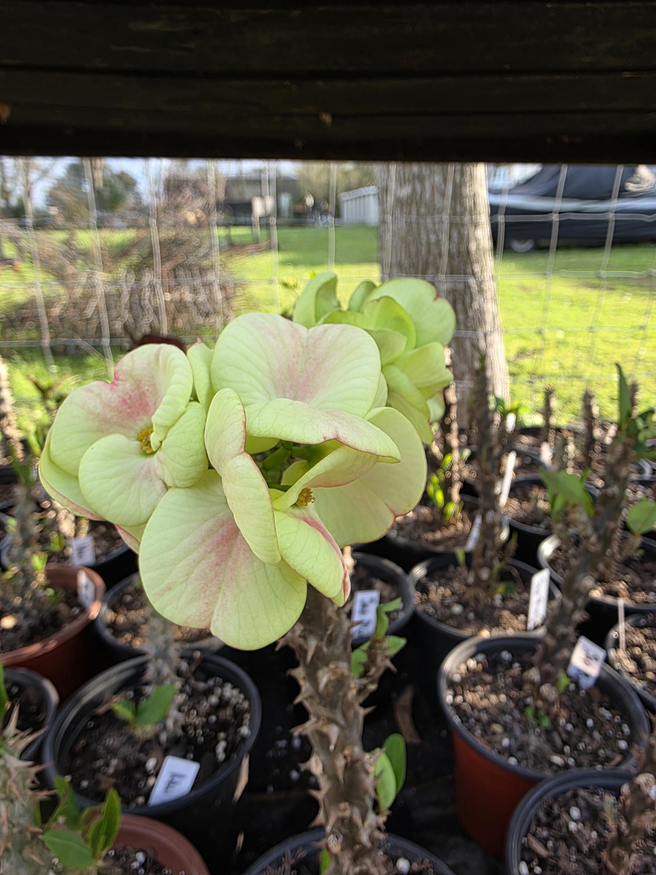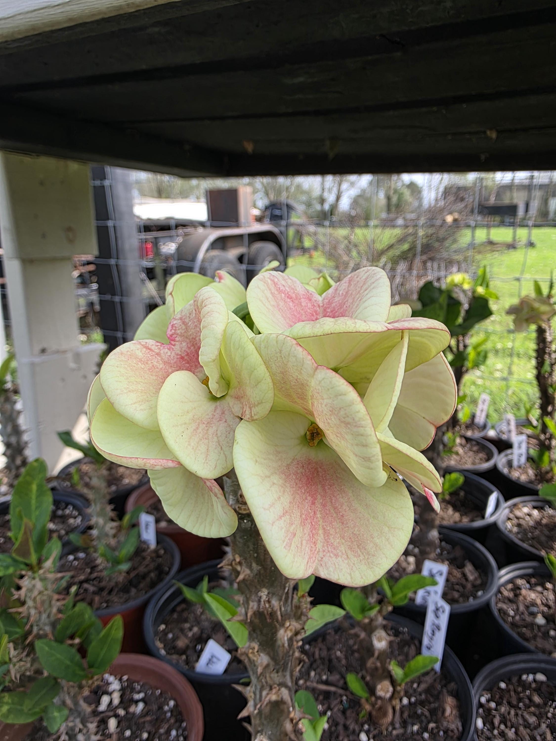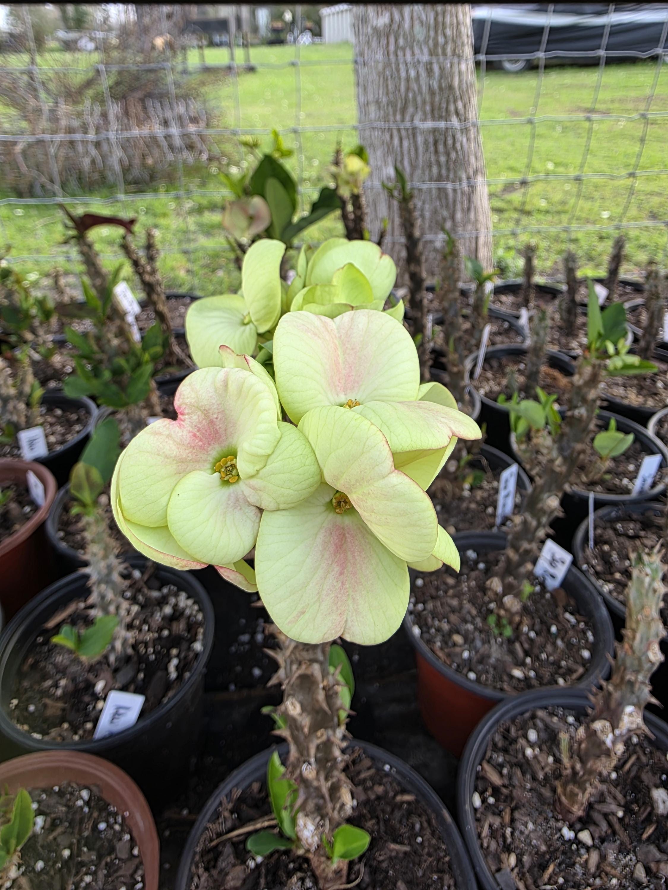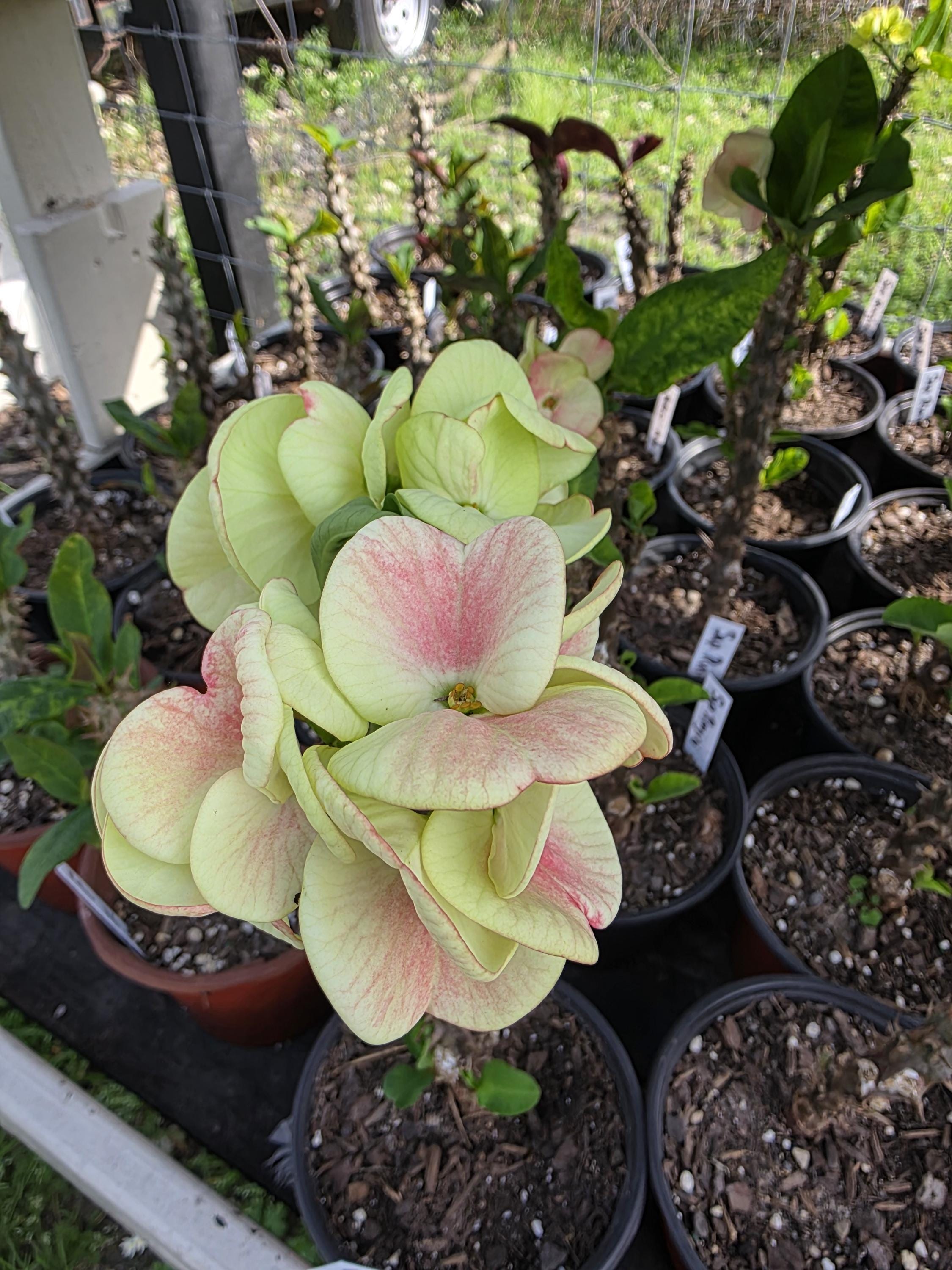 Beautiful Crown of Thorns with Large blooms. You will receive 3-6