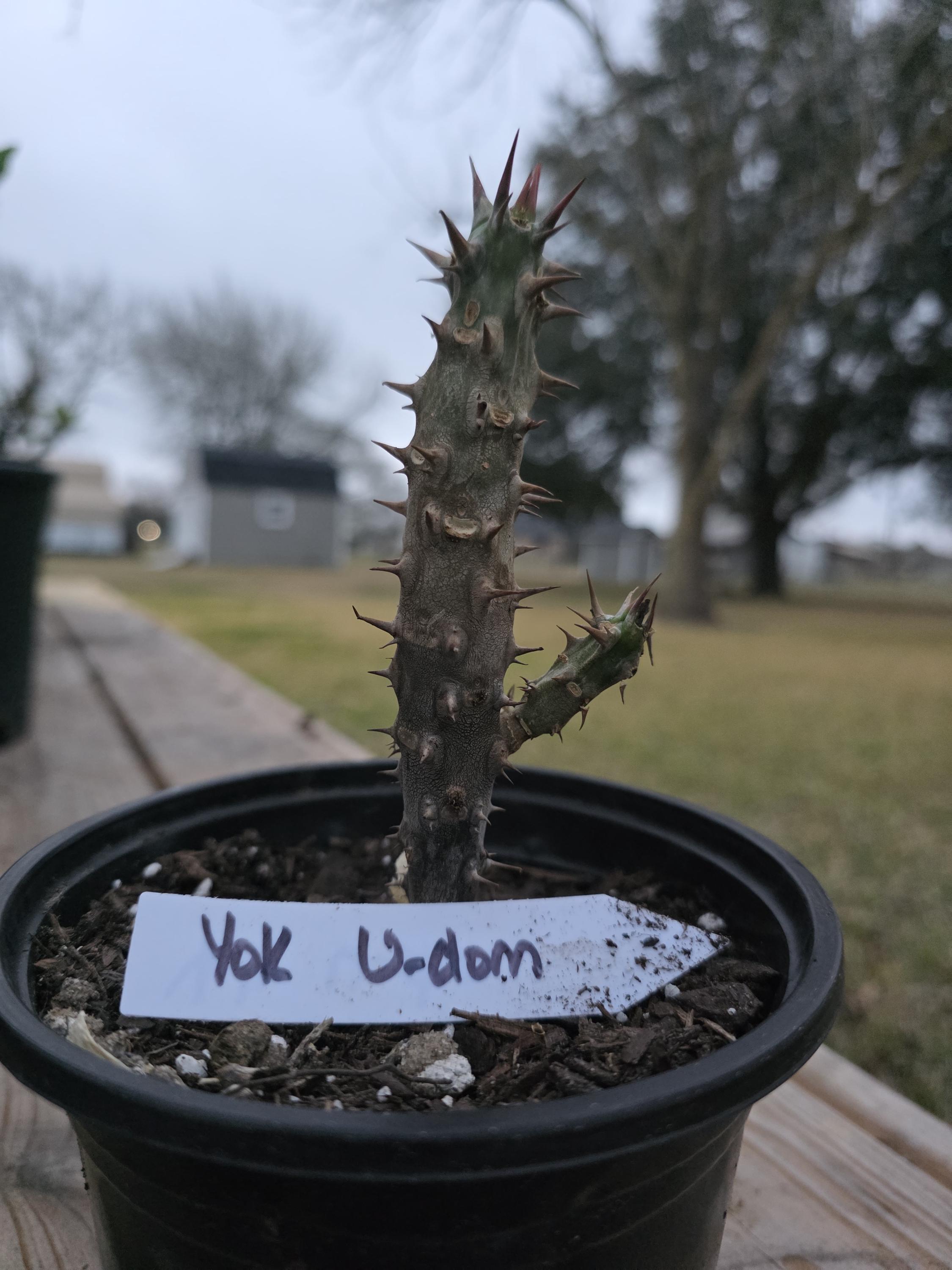 Beautiful Crown of Thorns with Large blooms. You will receive 3-6 INCH Plant OR LARGE plant with bare roots and some soil. This plant is drought tolerant. Full sun is needed, Use a well-draining potting mix containing perlite, and/or pine bark, soil must be drained before planting and weekly watering during hot weather.