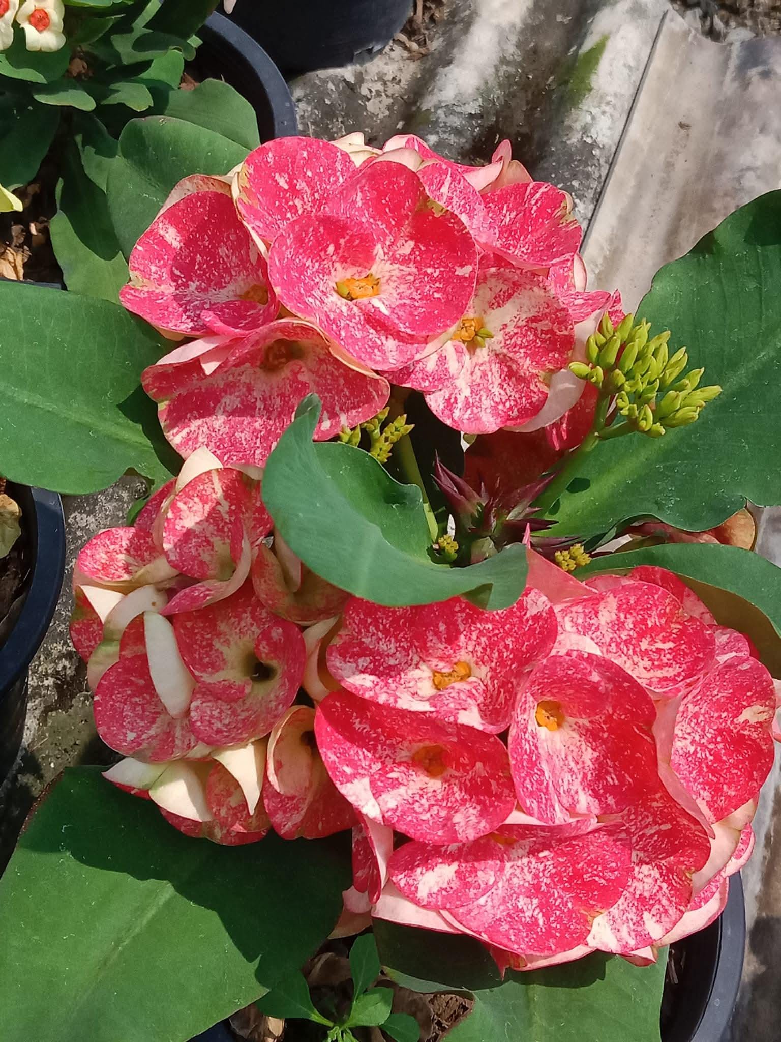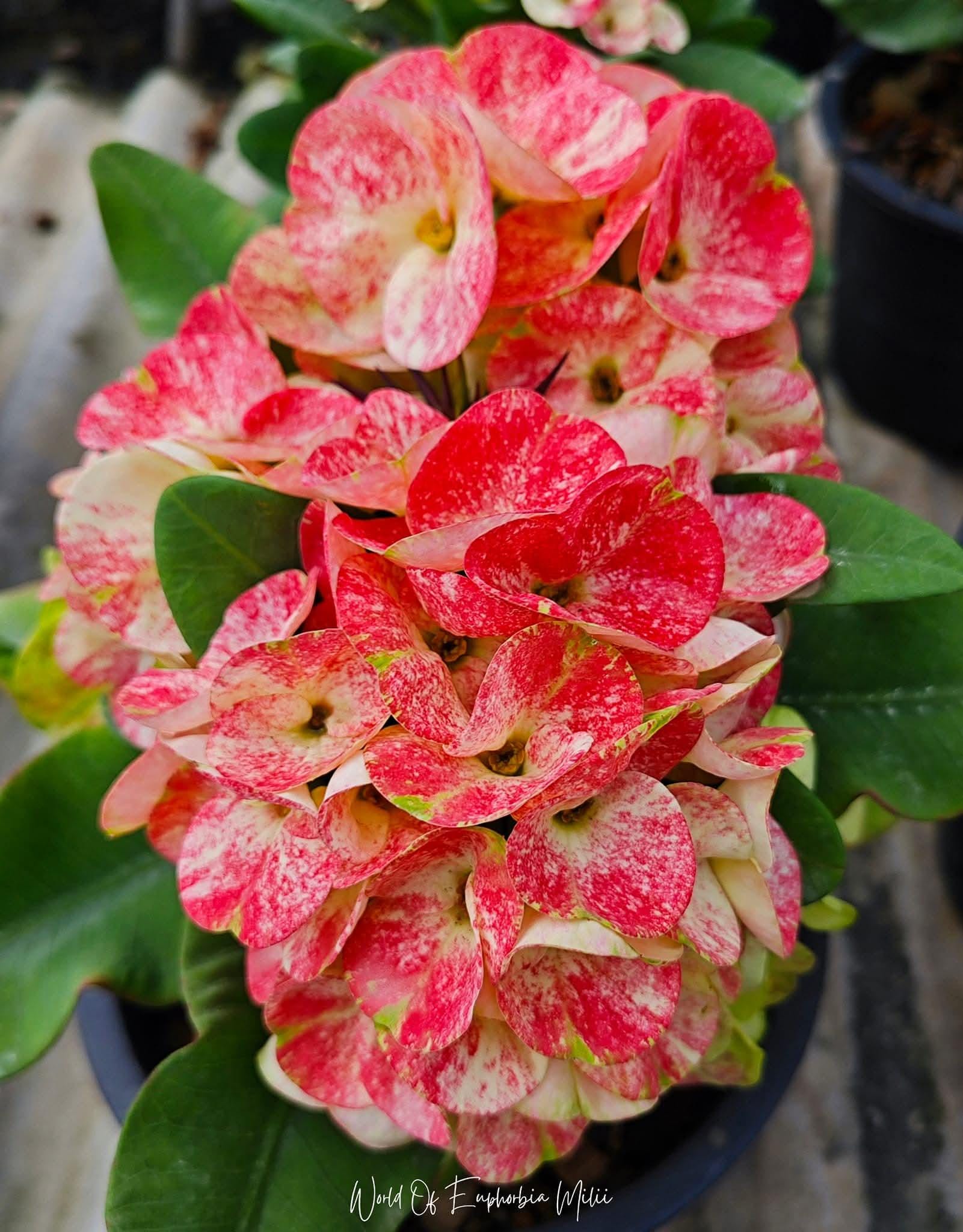Beautiful Crown of Thorns!!! You will receive 4-7inch plant or larger with bare roots and some soil. This plant is drought tolerant. Full sun is needed, Use a well-draining potting mix containing perlite, and/or pine bark, soil must be drained before planting and weekly watering during hot weather.